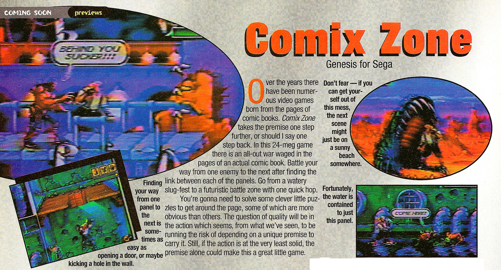 A preview of Comix Zone, excerpted from the seventy-third issue of Game Players (dated July 1995). |
