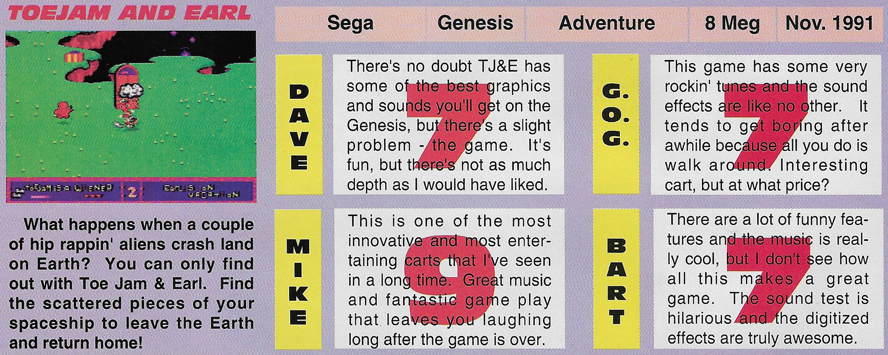 | 11:55, 5 December 2025 | TJ&E review in Mega Play vol 2 issue 5.jpg (file) | 558 KB | {{Information |Publication=Mega Play |Date=1991 |DownloadedFrom=https://www.retromags.com/files/file/4109-mega-play-vol2-no5-septemberoctober-1991 |Description=A panel review of ''ToeJam & Earl'', taken from the September-October 1991 issue of ''Mega Play''. }} | 1 | |